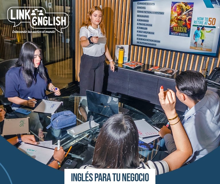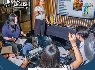 En Link English, ofrecemos cursos de inglés dinámicos y enfocados en el ámbito laboral, con un equipo profesional comprometido con la enseñanza y el aprendizaje continuo.
